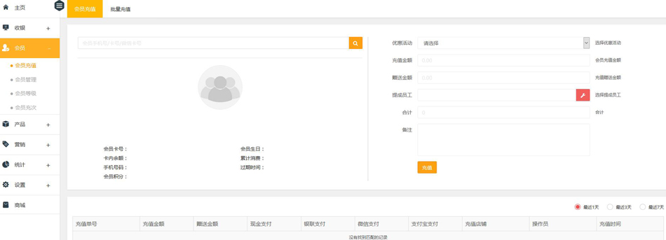 1、会员充值时,可以选择充值多少赠送多少,充值的多赠送就多,吸引客户眼球,绑定客户,让普通客户变成忠实客户。