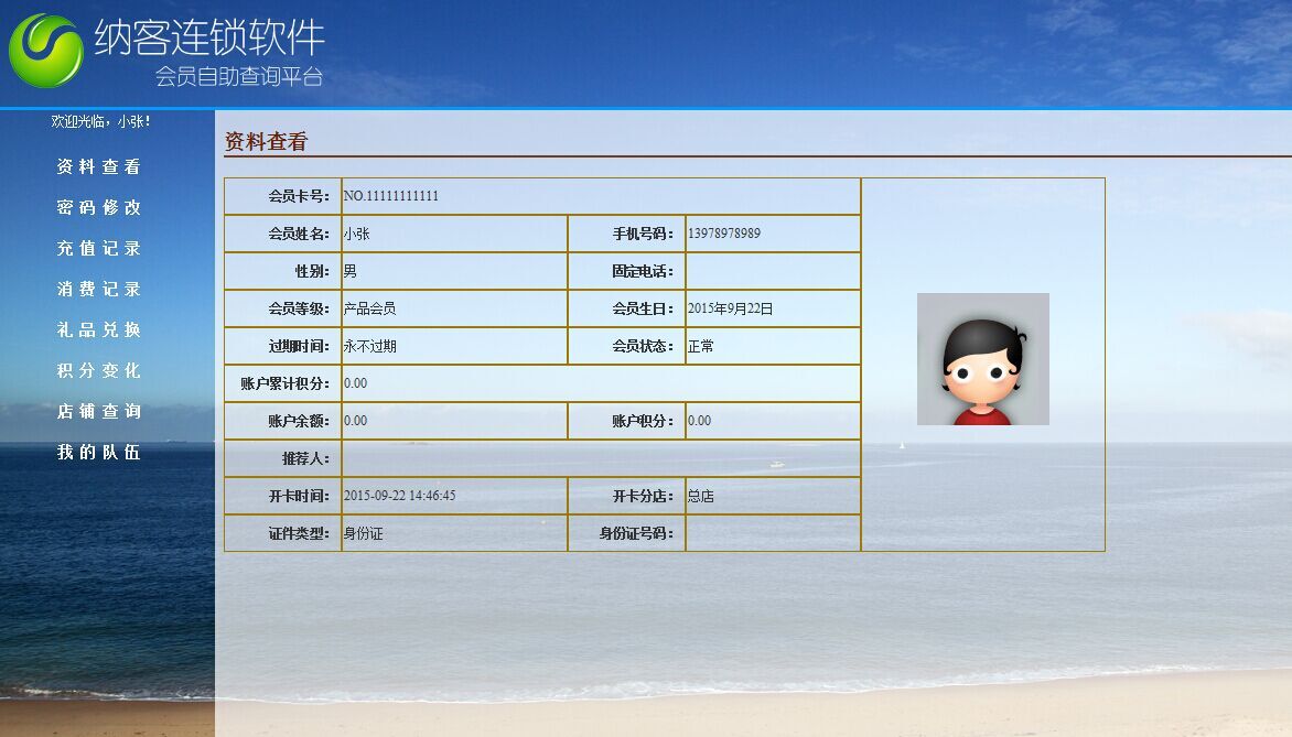 1、会员可通过会员自助平台查看个人卡内信息,修改个人资料;