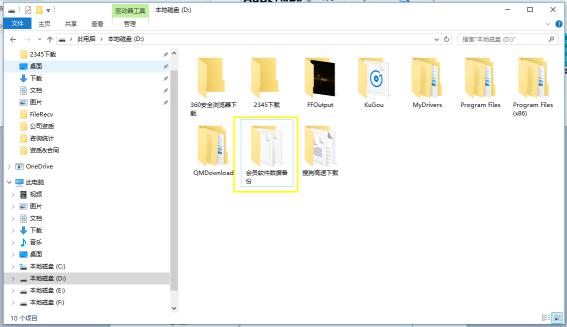 通常情况下,软件的默认安装路径是D盘,所以会在D盘生成一个“会员软件数据备份”的文件夹用于存储数据,如下图。