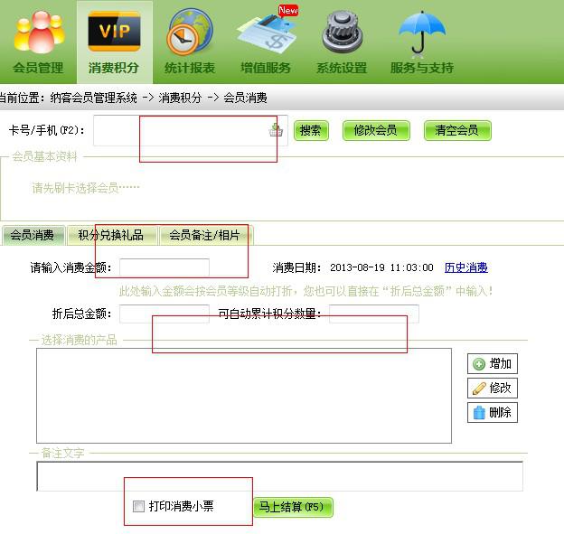 3.消费:消费中可以根据会员等设置会员折扣,消费时自动会员折扣、同时在此种根据会员积分、还可以一会员兑换礼品;会员个性化头像、历时消费、消费小票都可以实现。