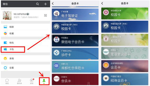 进入微信点击【我】-【卡包】-选择对应的会员卡。
