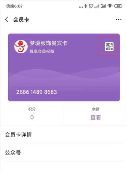 点击右上角的二维码图标-出示二维码给收银员扫描即可消费会员卡里的余额。