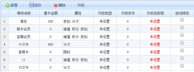 服务与支持会员等功能,是本系统会员卡进行积分、折扣计算的基础设置,通过设置不同的会员等,实现不同会员不同的兑换比例、折扣比例和有效期,从而实现一些强大而复杂的功能需求。