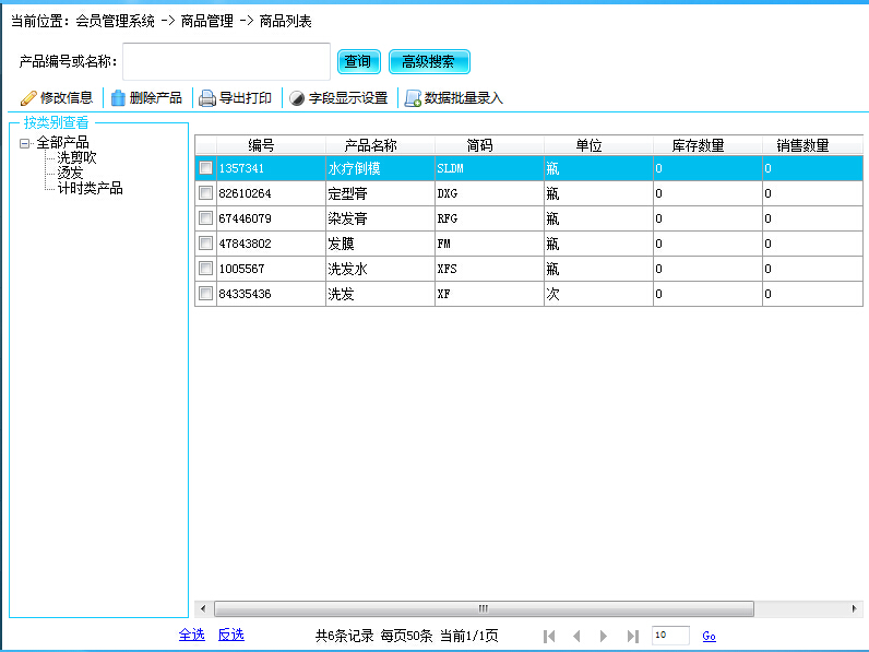 在产品列表点击右键,可弹出右键菜单,进行对产品资料的修改或者删除操作。