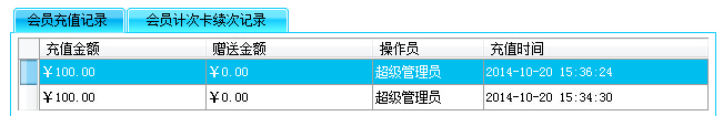 5、点击按钮“是”,会员充值完成,充值记录如下图: