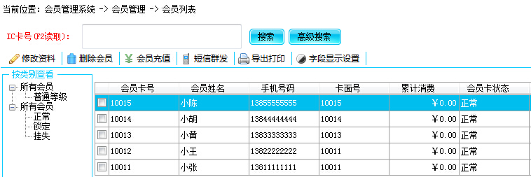 1、点击“会员管理”主菜单,页面显示所有会员列表,如下图: