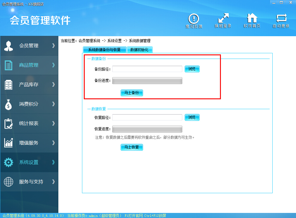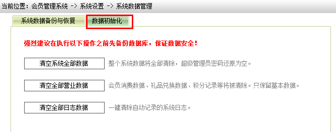 清空全部营业数据:包括会员消费、会员礼品兑换、积分记录这些营业数据;