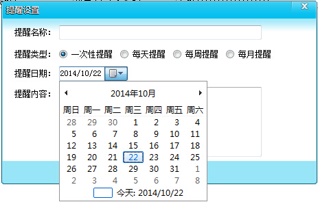 提醒类型:可选择“一次性提醒”,“每天提醒”,“每周提醒”,“每月提醒”;