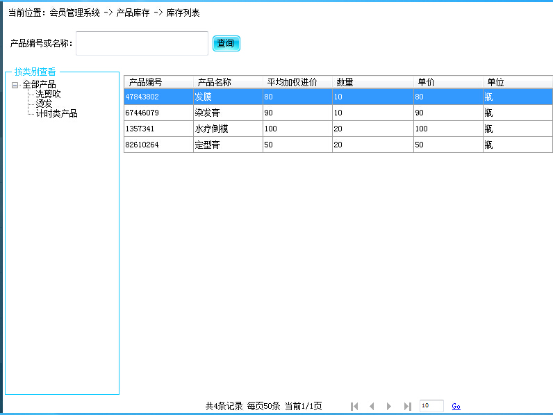 列表中可以直观方便的查看到库存的产品信息,产品的数量,单价等等。